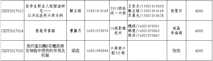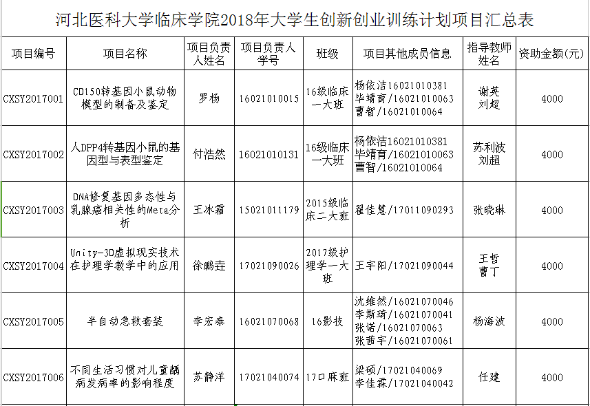 根据《51视频 大学生创新性实验计划项目管理办法(试行)》(冀医临教[2017]6号)和《关于申报2018年51视频 大学生创新性实验计划项目的通知》文件精神,学院组织专家组对申报项目进行了评审,评出2018年51视频 “大学生创新性试验计划项目”15项,现予以公布。
