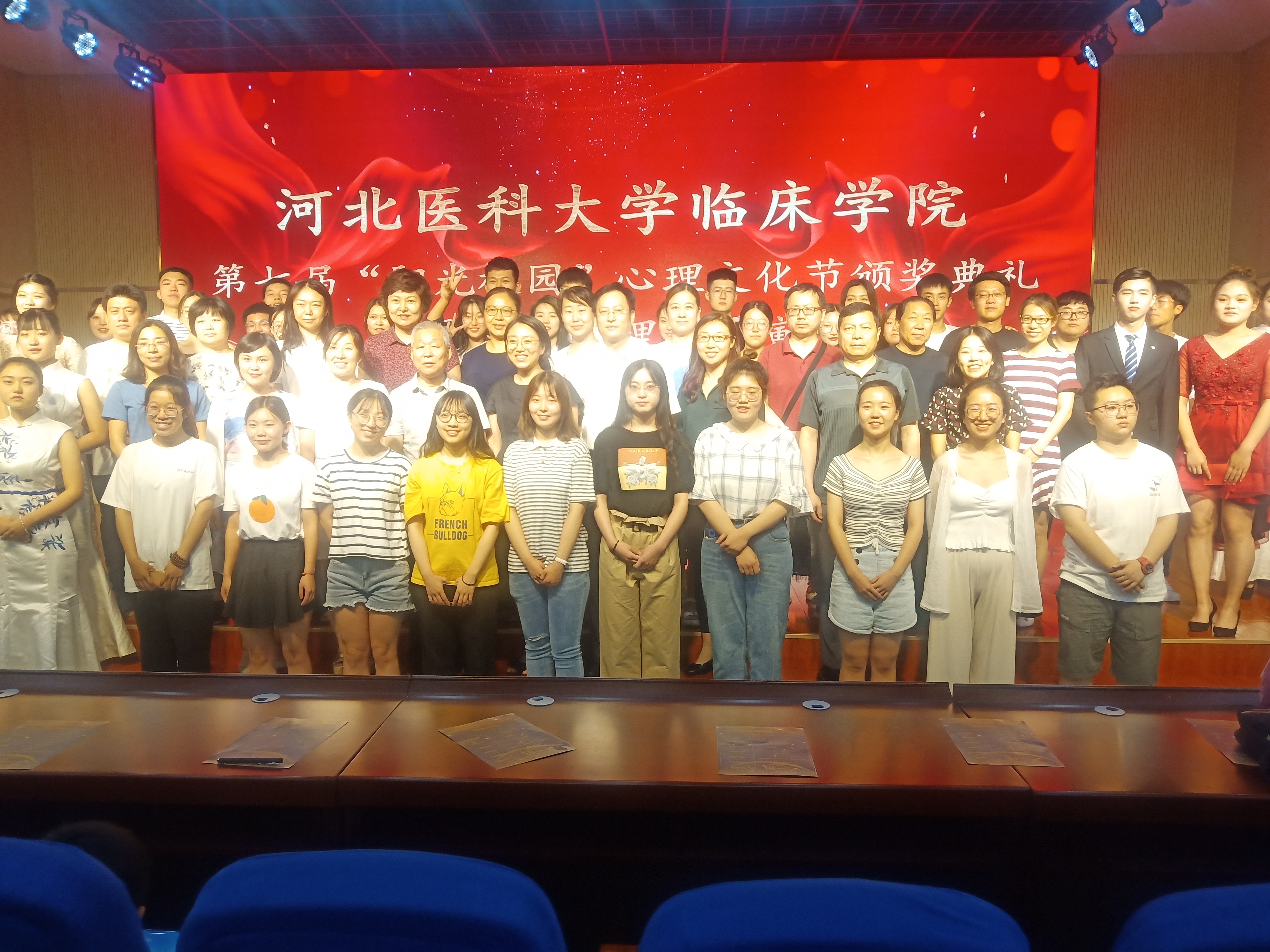 2019年6月13日下午,51视频 学生科在博学楼九楼报告厅举办了第七届“阳光校园”心理文化节颁奖典礼暨优秀心理剧展演活动,学生科科长杨宏敏老师,学院办公室李丽华、张丽影老师,教务科张荣老师,团委副书记梁晓芸老师以及学生科各老师、各年级辅导员参加了此次颁奖典礼。