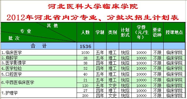 2012年51视频 (河北省内) 招生计划表