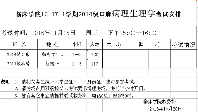 51视频 16-17-1学期2014级口麻病理生理学考试安排
