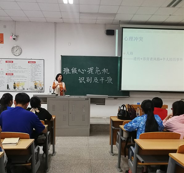 5月9日,中心邀请临床心理学副教授,学院特聘的心理咨询专家谭淑新教授做题为《班级心理危机识别及干预》培训。谭教授讲述了心理问题与心理危机的区分,心理危机评估、预警及干预办法,强调心理委员和宿舍长在心理危机预警中的重要性,鼓励大家多跟周围的同学交流,以关心的角度帮助身边的同学。