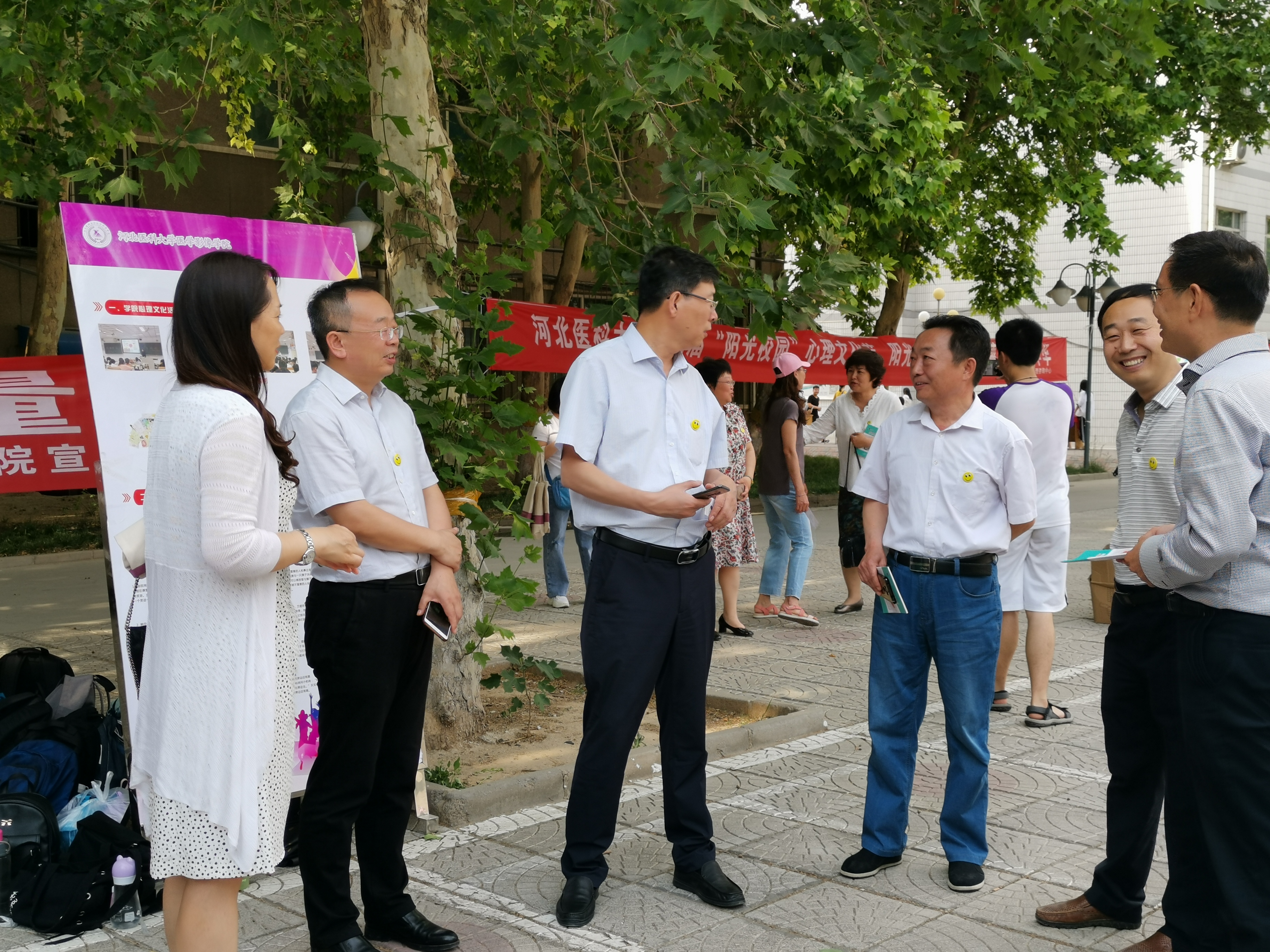 5月24日下午,51视频 学生科大学生快乐成长指导中心举办的第七届“阳光校园”心理文化节室外宣传活动,将为期一个月的“阳光校园”心理文化节推向高潮,校学生处就业指导中心主任史广玉,学生处副处长吴治锋、王宏伟,学院党委书记马建智,副院长于丽英、刘延冰参加了本次活动。