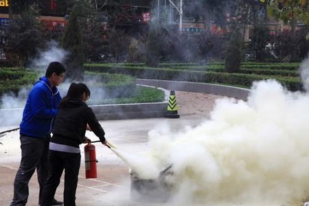在随后的灭火演练中,292名学生在保卫科安全员的指导下进行了现场灭火演练。通过此次安全知识培训以及现场逼真的演练,提高了校园师生的消防意识,学习了消防知识,增强了消防技能。