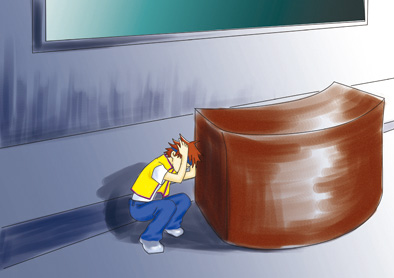 5、在操场或室外时,可原地不动蹲下,双手保护头部。注意避开高大建筑物或危险物,不要回到教室去。