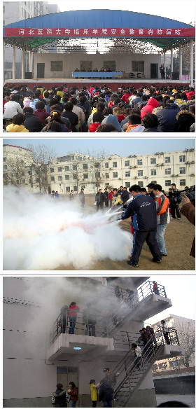 大会由保卫科科长王玉太同志主持,邵新才副院长代表学院发表了讲话,石家庄市消防支队的曹参谋进行了消防安全知识讲座。曹参谋从“消防器材的使用”、“火场中的紧急疏散、逃生、救助”等方面进行了讲解。随后进行了现场灭火演练,30多名师生代表分批分组奔向火源,按消防器材使用操作要领将火源扑灭。
