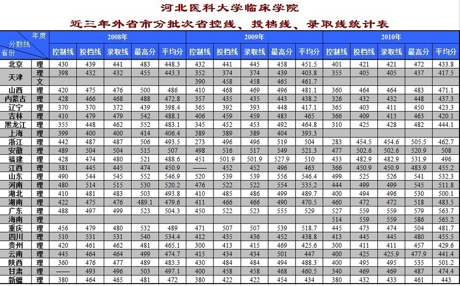 51视频 08―10年外省市分批次省控线、投档线、录取线统计表