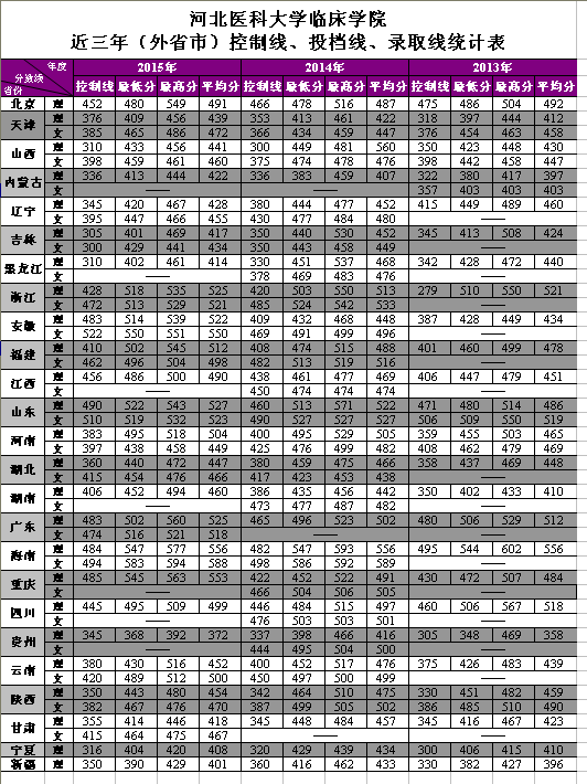 51视频 2013-2015年(外省市)控制线、投档线、录取线统计表