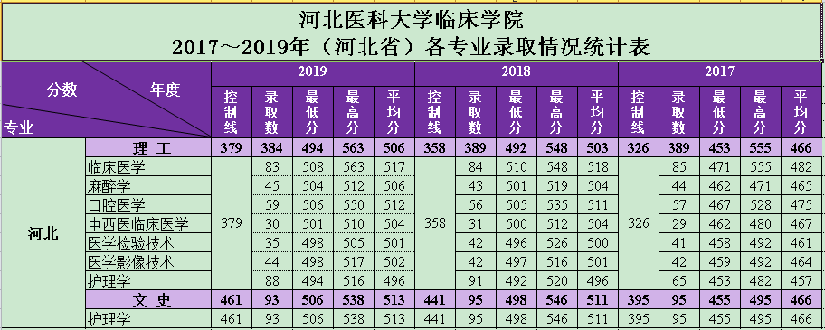 51视频 2017-2019年各专业控制线、投档线、录取线统计表(河北省)