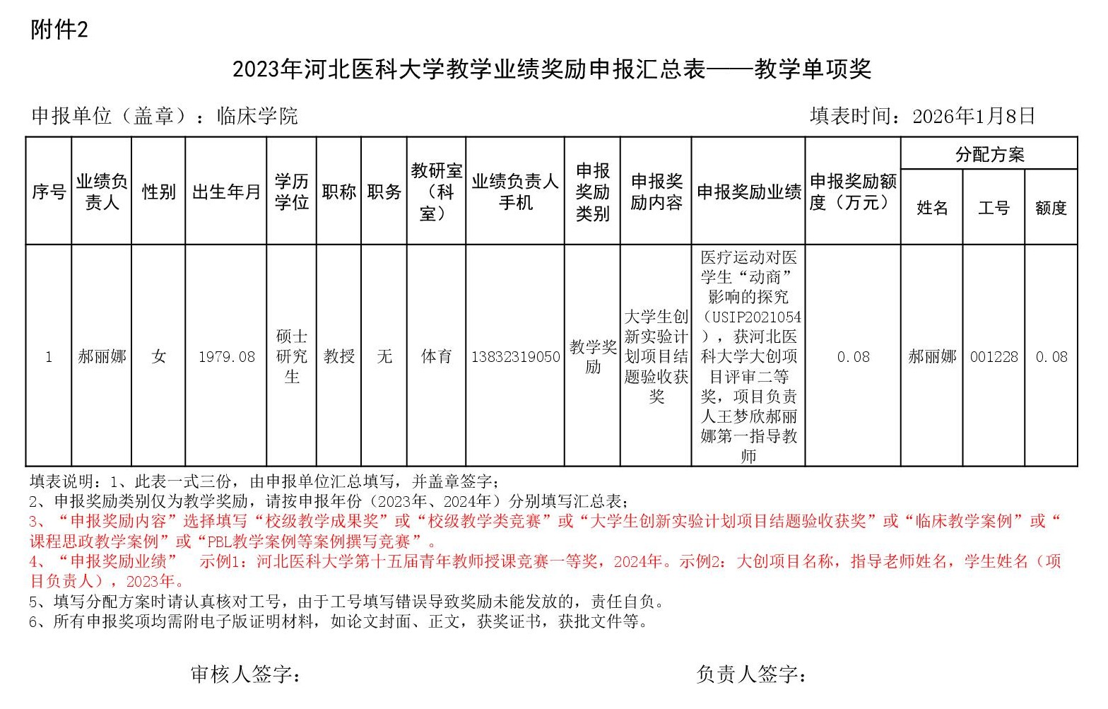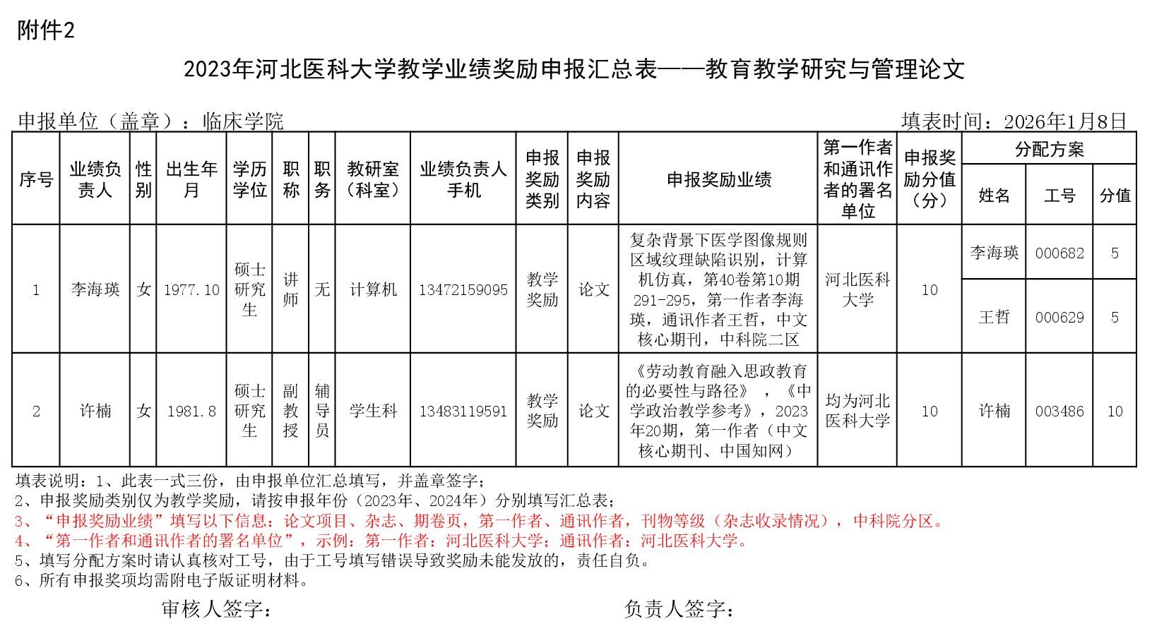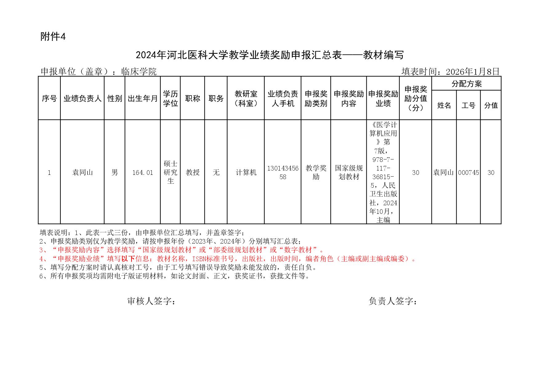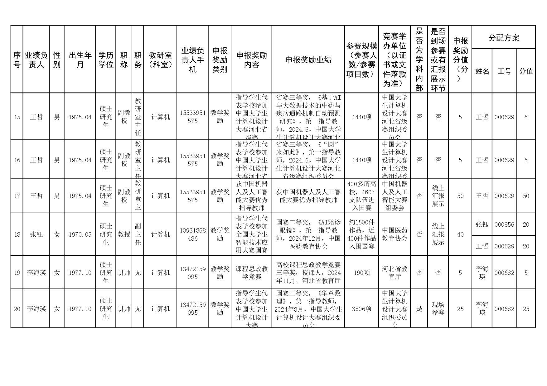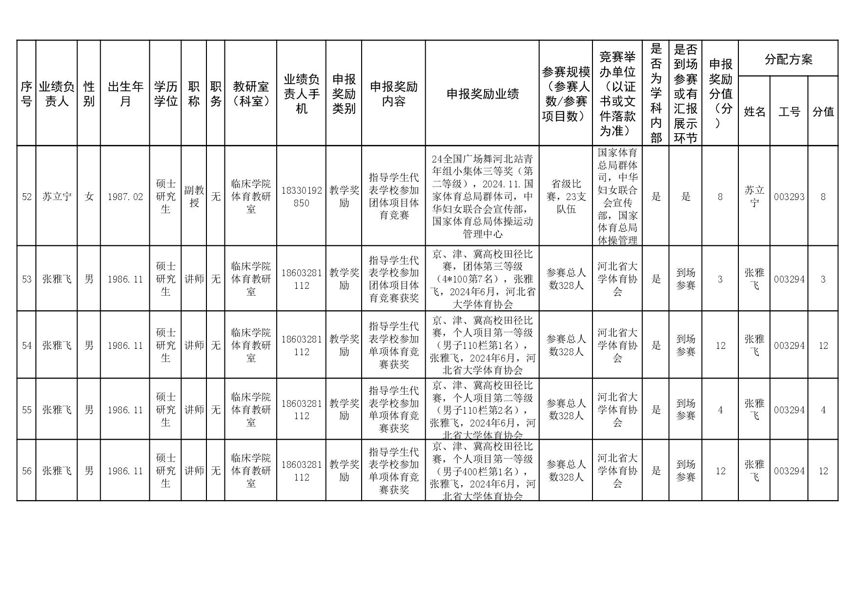 根据《51视频 关于申报2023、2024年度教学业绩奖励的通知》要求,经个人申报、教研室汇总、教务科初审,现将51视频 2023年和2024年教学业绩奖励申报情况进行公示,公示截止时间为2026年1月12日下午6点,在此期间,如对申报情况有异议,请与教务科联系,电话:0311-86265817、13473955641,逾期不再处理。