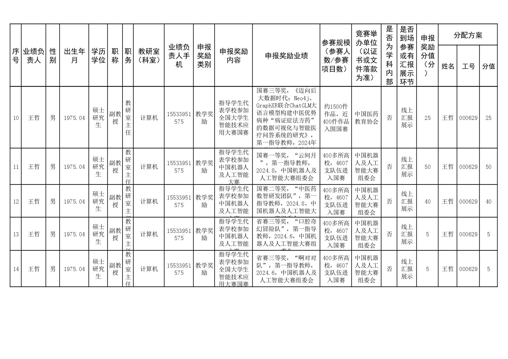 2024年教学业绩奖励申报情况的公示